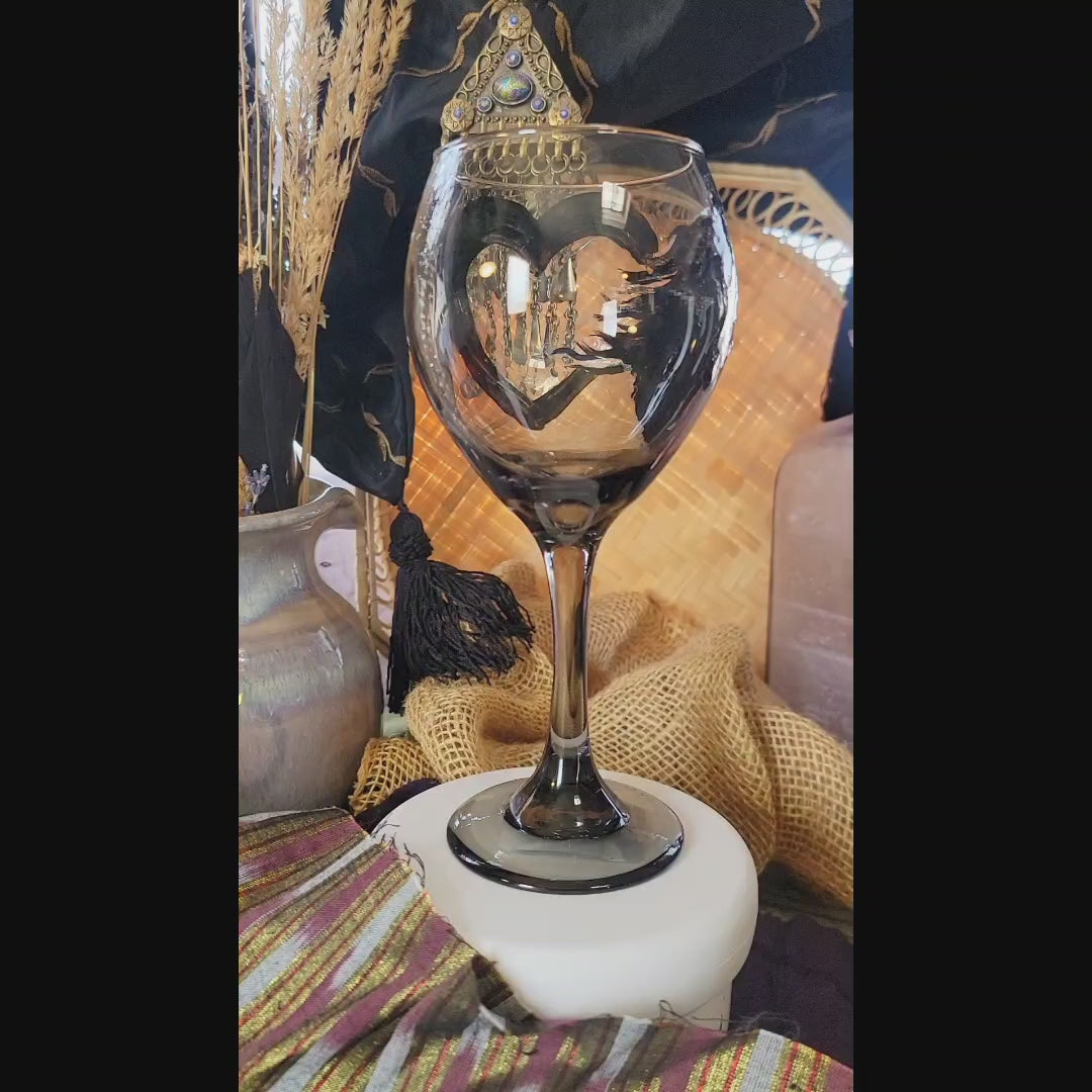 You will receive a custom hand painted wine glass of a gorgeous Arabian hand painted with a heart. No 2 are ever alike as they are custom painted. Choose from smokey black as shown or clear. Stemless available as well!