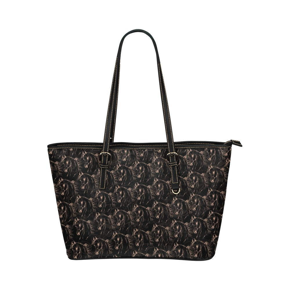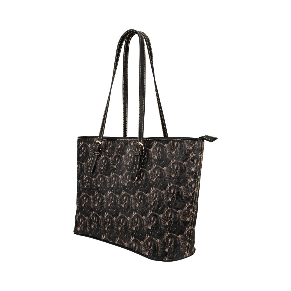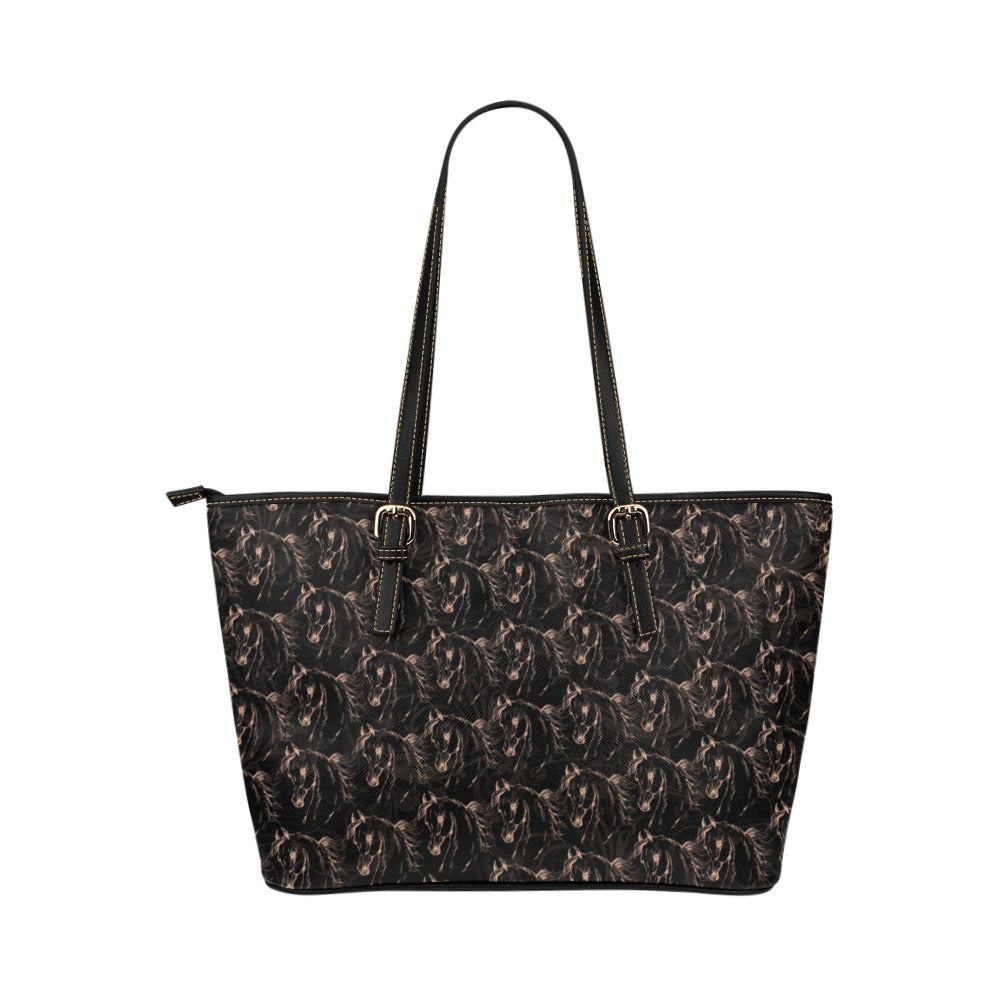 Arabian horse Pattern black handbag Faux vegan Leather Tote Shoulder Bag