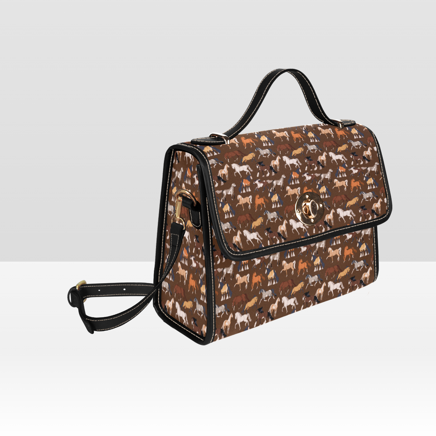 This Horse Breed Cross Body Handbag is crafted from high-grade waterproof canvas for durability and longevity. It features two interior pockets and one zipper pocket for small items, as well as adjustable PU leather handles and a removable and adjustable PU leather shoulder strap. Enjoy your lightweight bag with water-resistant protection and adjustable straps for a comfortable fit.