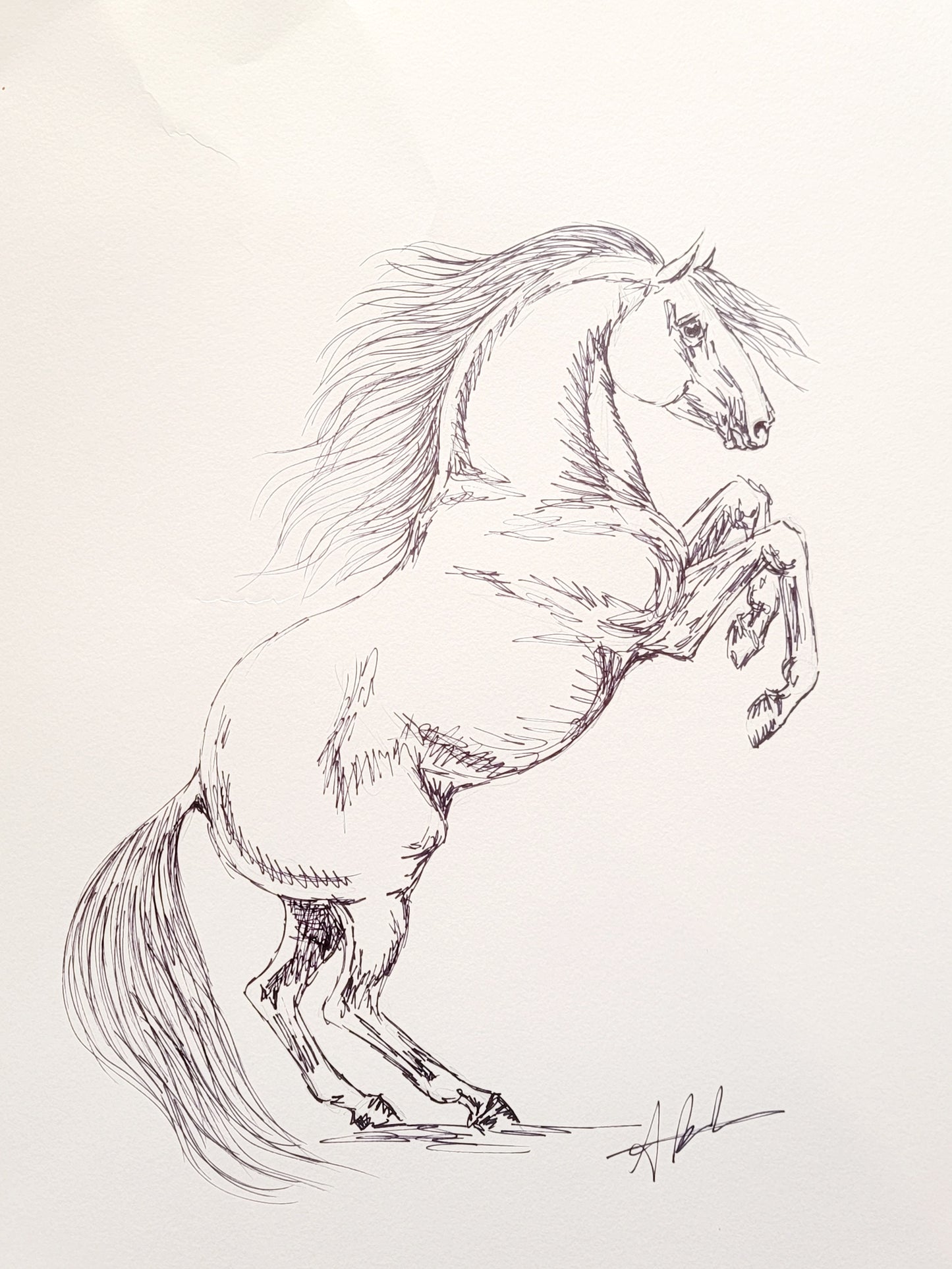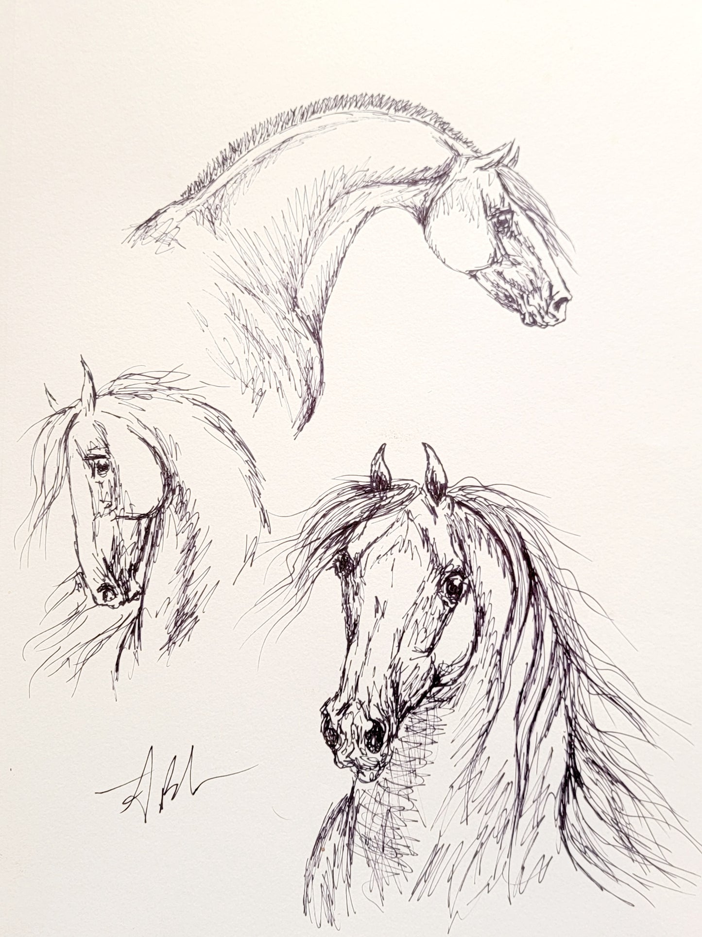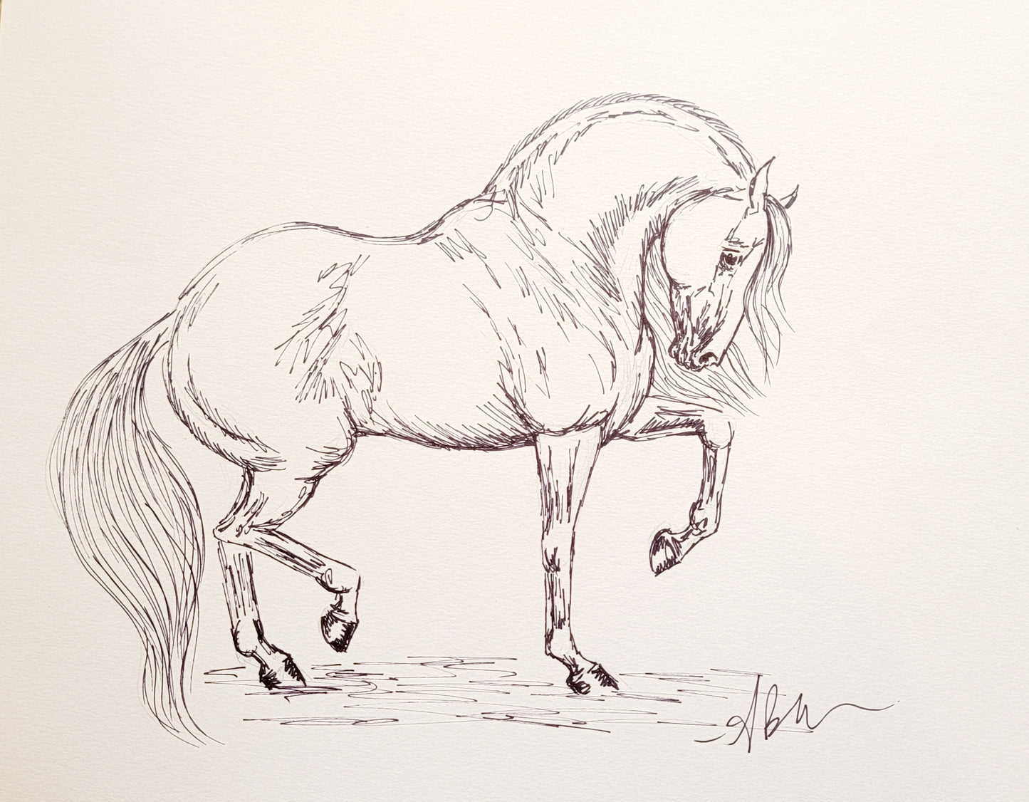 Discover the beauty of baroque Spanish horses with this set of 3 pen and ink sketches. Measuring 11x15 inches, these detailed drawings capture the elegance and strength of these majestic creatures. Perfect for any horse enthusiast or lover of art, these sketches will add a touch of sophistication to any space.